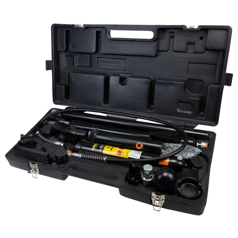 Набір гідрообладнання для рихтування являє собою комплект з гідравлічного насосу, циліндру, подовжувачів і насадок. Призначений для розтягування та рихтування металоконструкцій, наприклад кузовів автомобіля. Набір виконаний з високоякісних матеріалів. Для зручності зберігання компонентів набір поставляється в компактному кейсі. Даний набір можна використовувати для професійного використання на великих підприємствах.